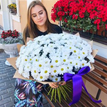 Большой, нежный и красивый букет из ромашковой хризантемы. Прекрасное сочетание цены и качества.