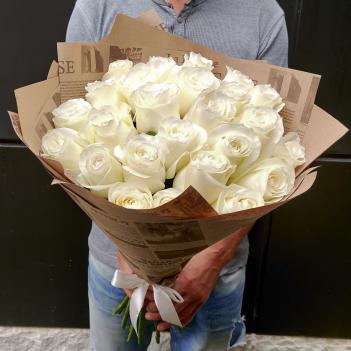 Состав: Бруния, Роза кустовая светло-розовая, роза белая 15шт., эвкалипт/фисташка, сумка крафт с ручками.