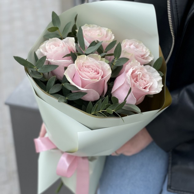 Состав: Роза (5) Эвкалипт (1) Писташ (2) Оформление