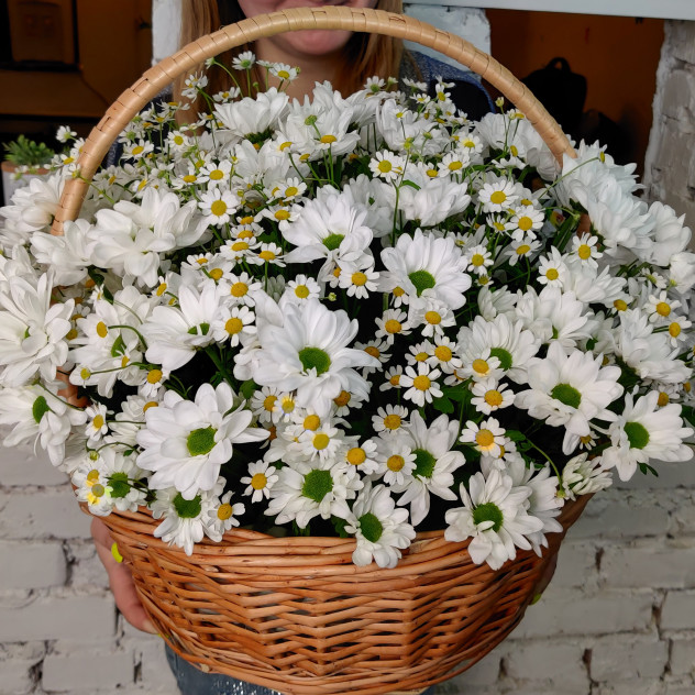 Милая корзинка с ромашками. и пусть она улыбнётся)