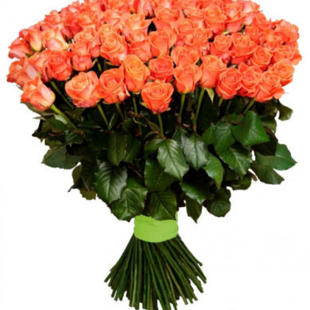 Состав: Упаковка (пленка с лентой), Роза оранжевая 60 см 101шт.